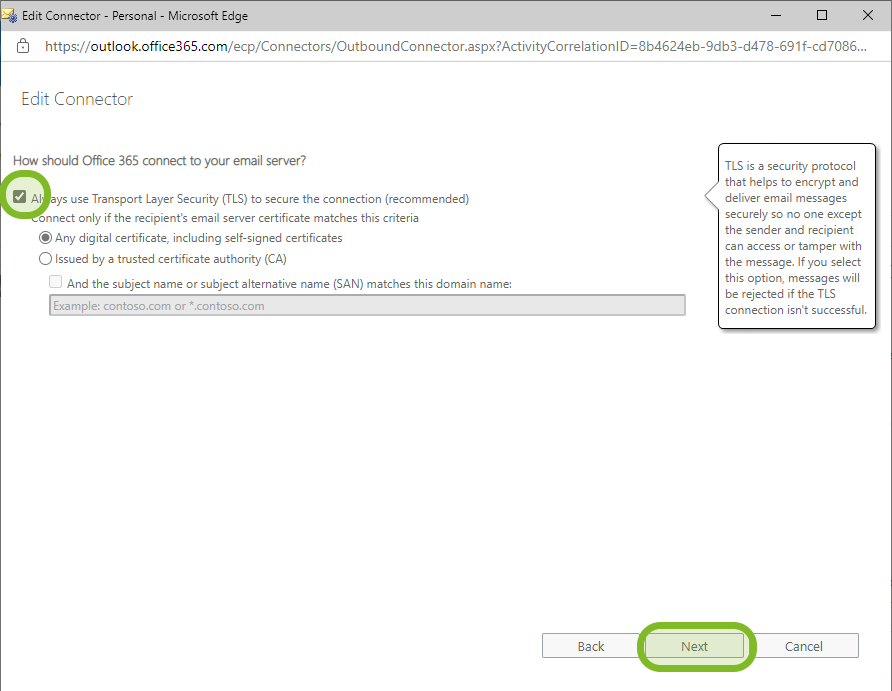 Connector B: From O365 to your organization's email server (Send to BrandQuantum Mail Router)